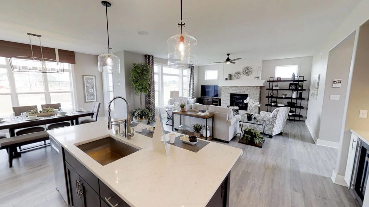 This beautiful two-story home features the amenities that today’s buyers are looking for, starting with a grand entry foyer. You are welcomed to the open concept great room and kitchen featuring 9’ high ceilings, a spacious dinette, and an enlarged kitchen island with quartz countertops perfect for entertaining.