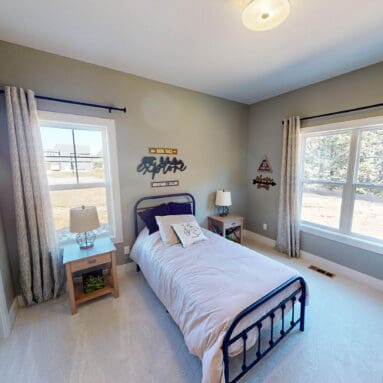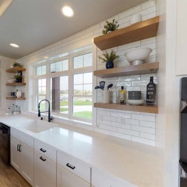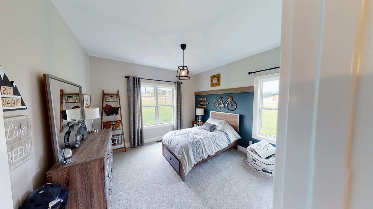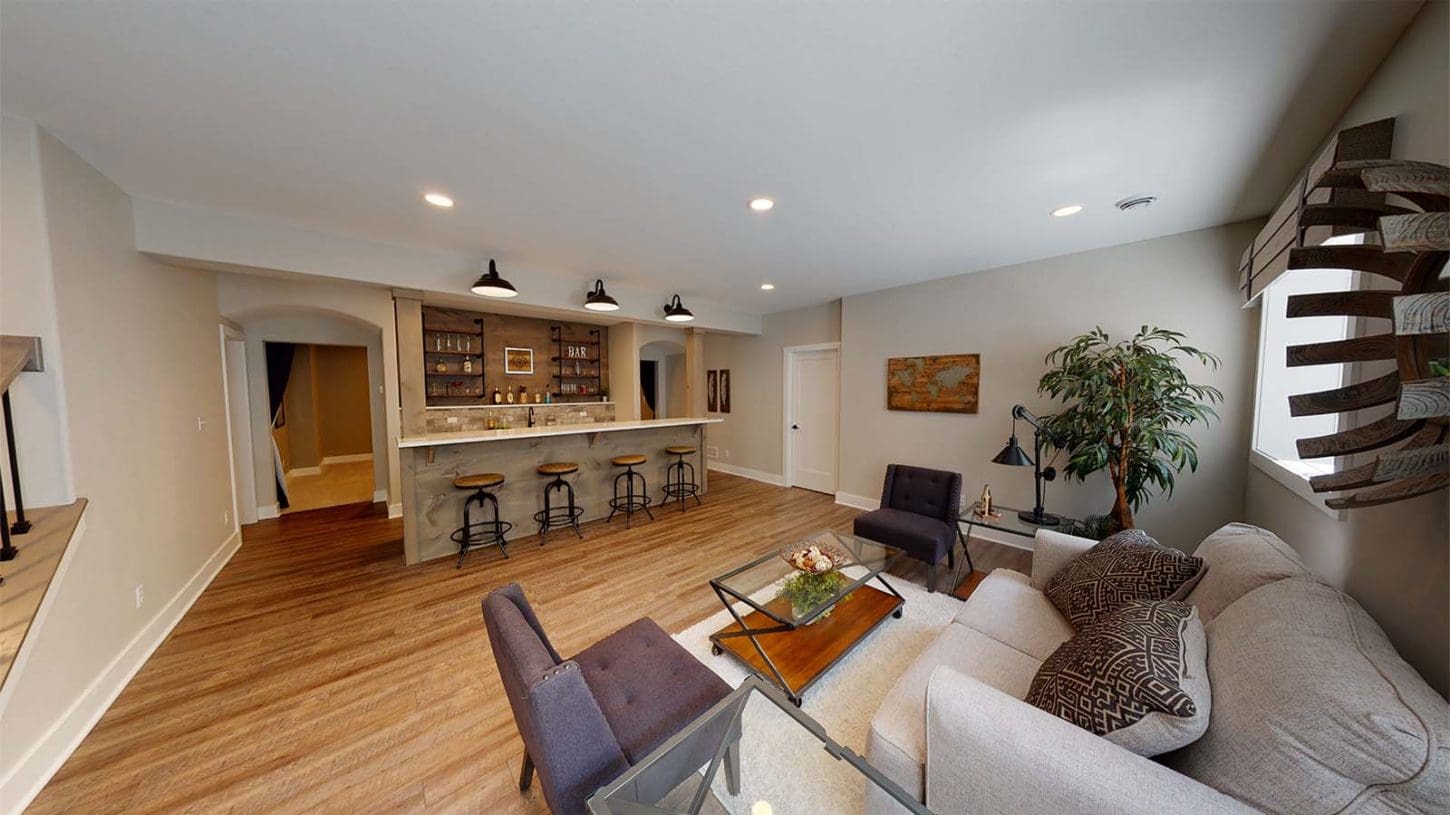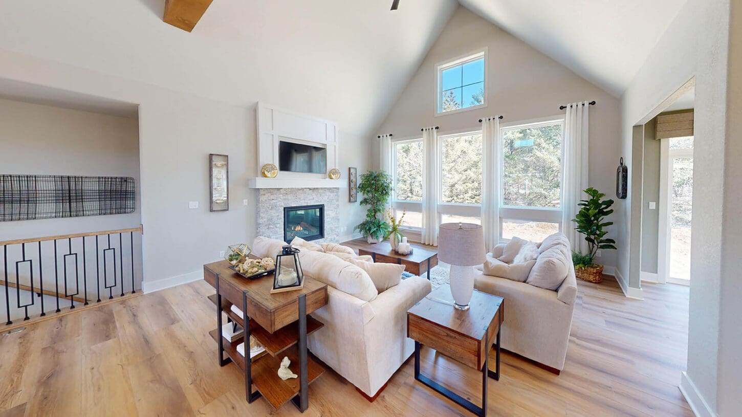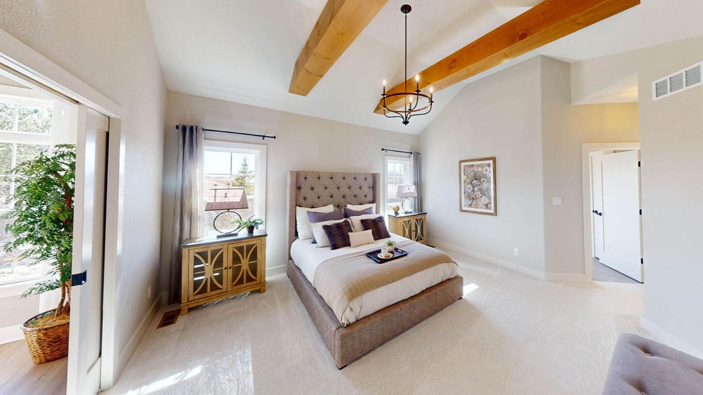 One notable upgrade to our 2021 Parade of Homes model is a stately canted garage. As you step inside The Harper, a soaring cathedral ceiling stretching the length of the home and a huge kitchen window that faces the front yard will immediately capture your attention. Its bright kitchen features a spacious island with colorful lower cabinets and rustic beam treatments overhead. Our signature “Demlang Messy Kitchen,” a twist on the traditional butler’s pantry, helps you stow away life’s little messes.