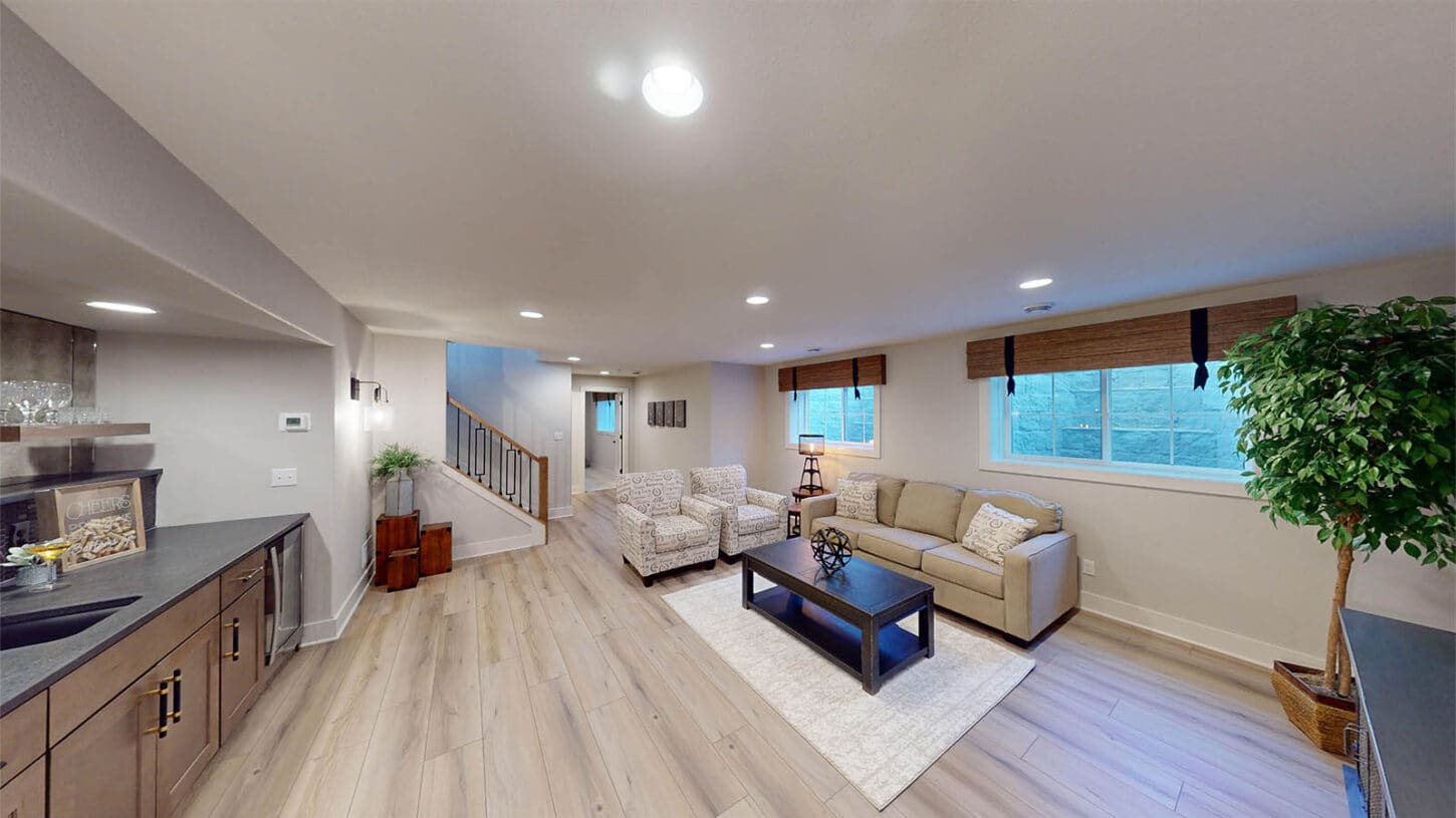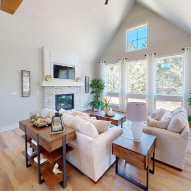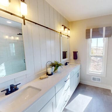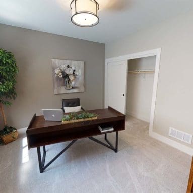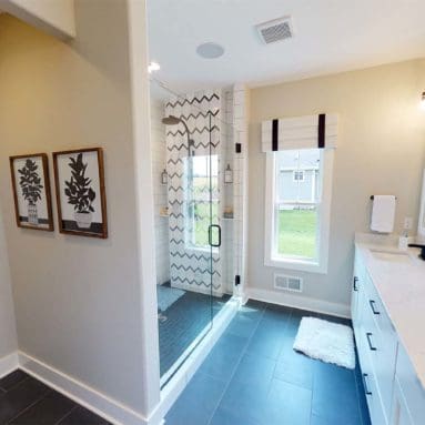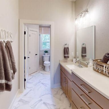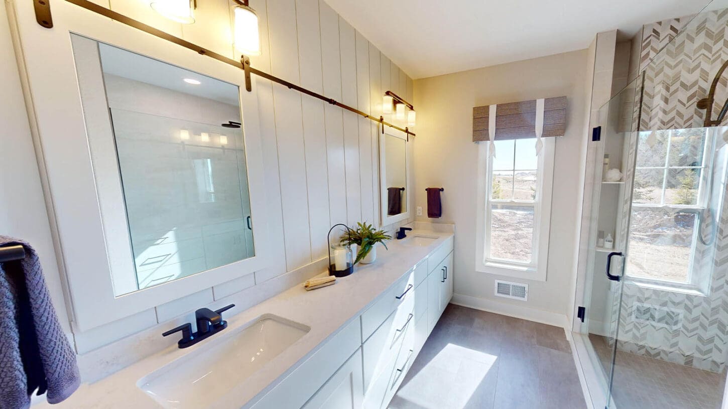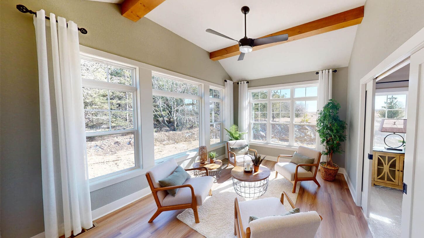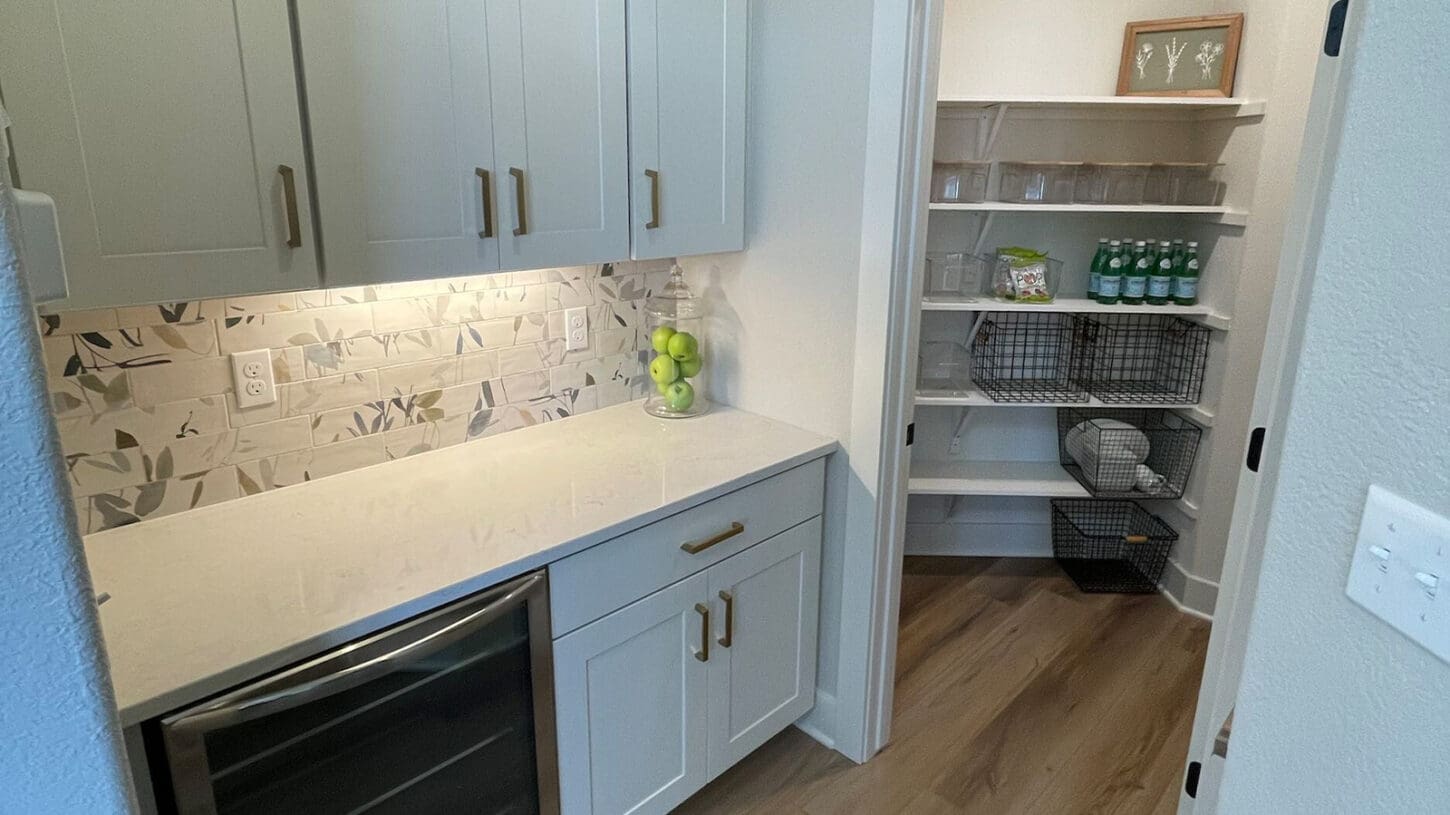One notable upgrade to our 2021 Parade of Homes model is a stately canted garage. As you step inside The Harper, a soaring cathedral ceiling stretching the length of the home and a huge kitchen window that faces the front yard will immediately capture your attention. Its bright kitchen features a spacious island with colorful lower cabinets and rustic beam treatments overhead. Our signature “Demlang Messy Kitchen,” a twist on the traditional butler’s pantry, helps you stow away life’s little messes.
