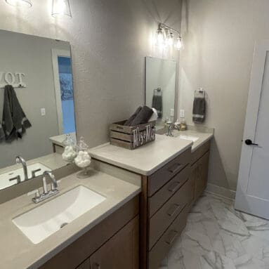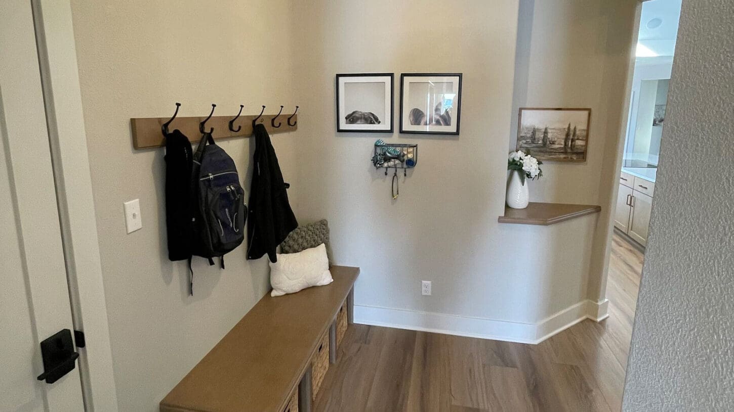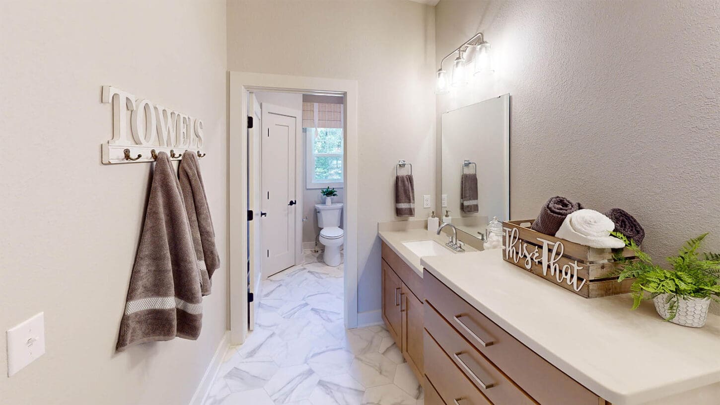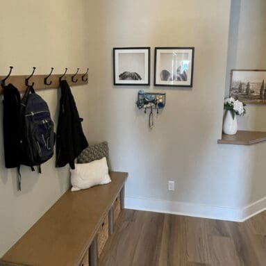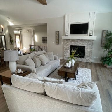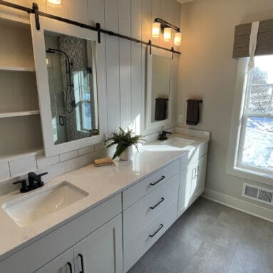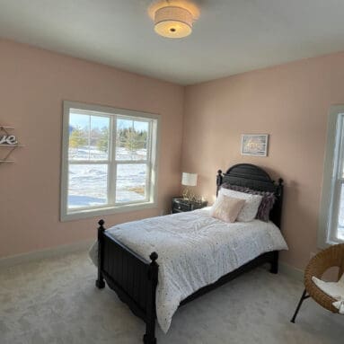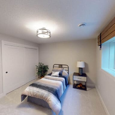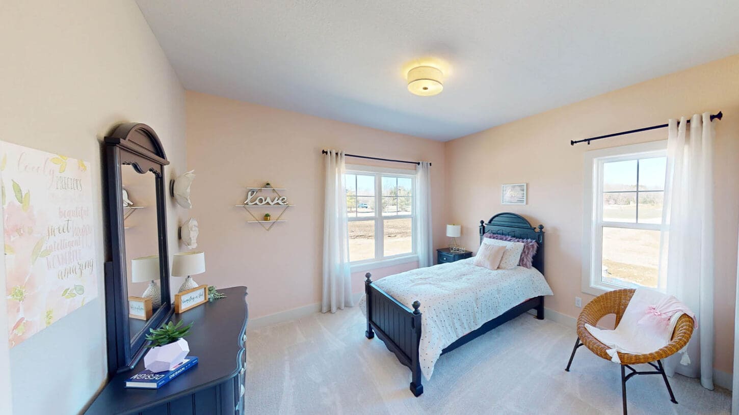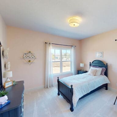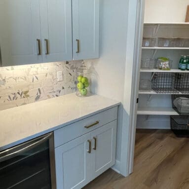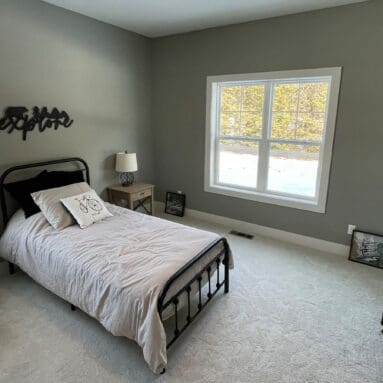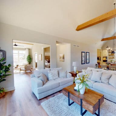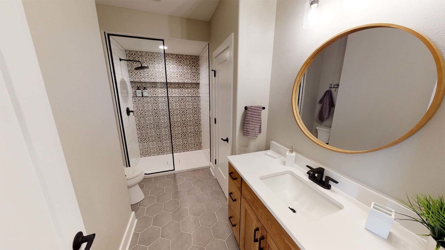 One notable upgrade to our 2021 Parade of Homes model is a stately canted garage. As you step inside The Harper, a soaring cathedral ceiling stretching the length of the home and a huge kitchen window that faces the front yard will immediately capture your attention. Its bright kitchen features a spacious island with colorful lower cabinets and rustic beam treatments overhead. Our signature “Demlang Messy Kitchen,” a twist on the traditional butler’s pantry, helps you stow away life’s little messes.