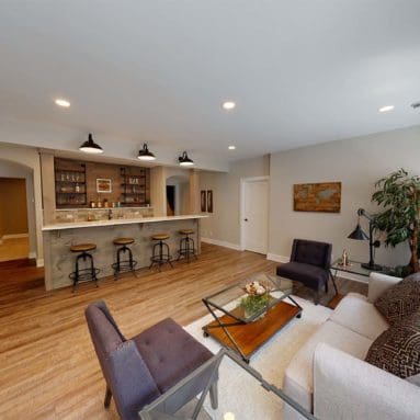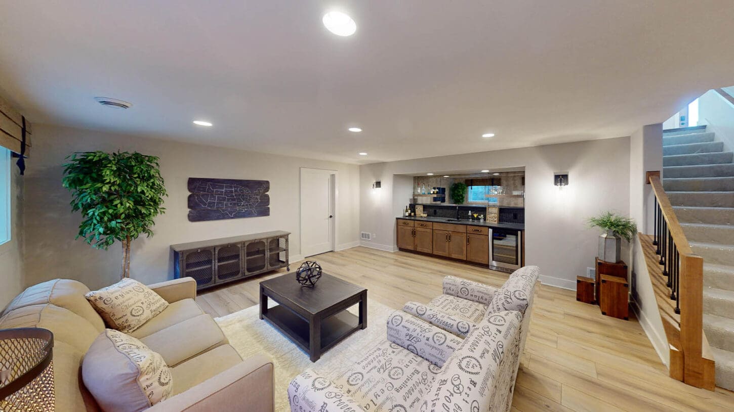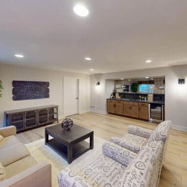 This gorgeous family home is rounded out by a finished lower level, complete with useful features like a home bar and office space for working from home.