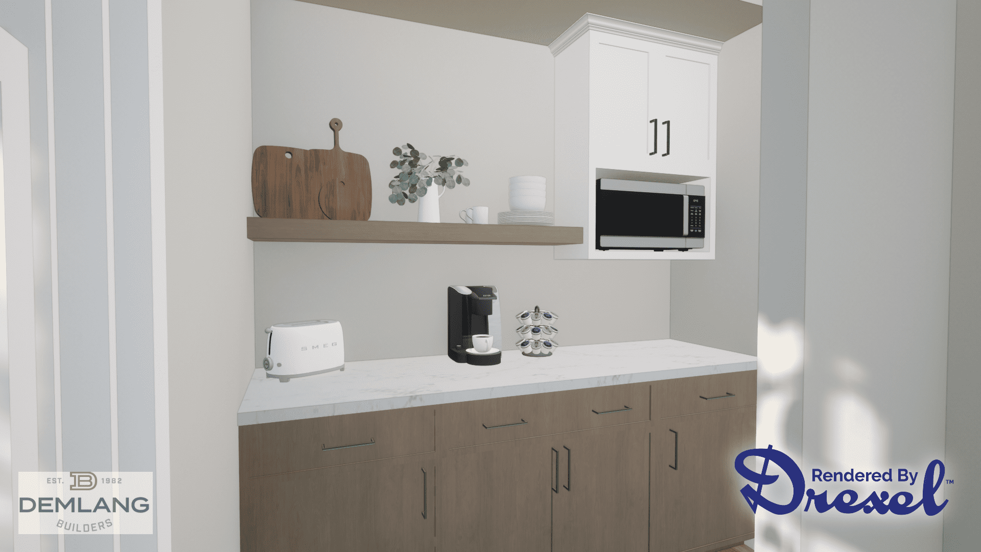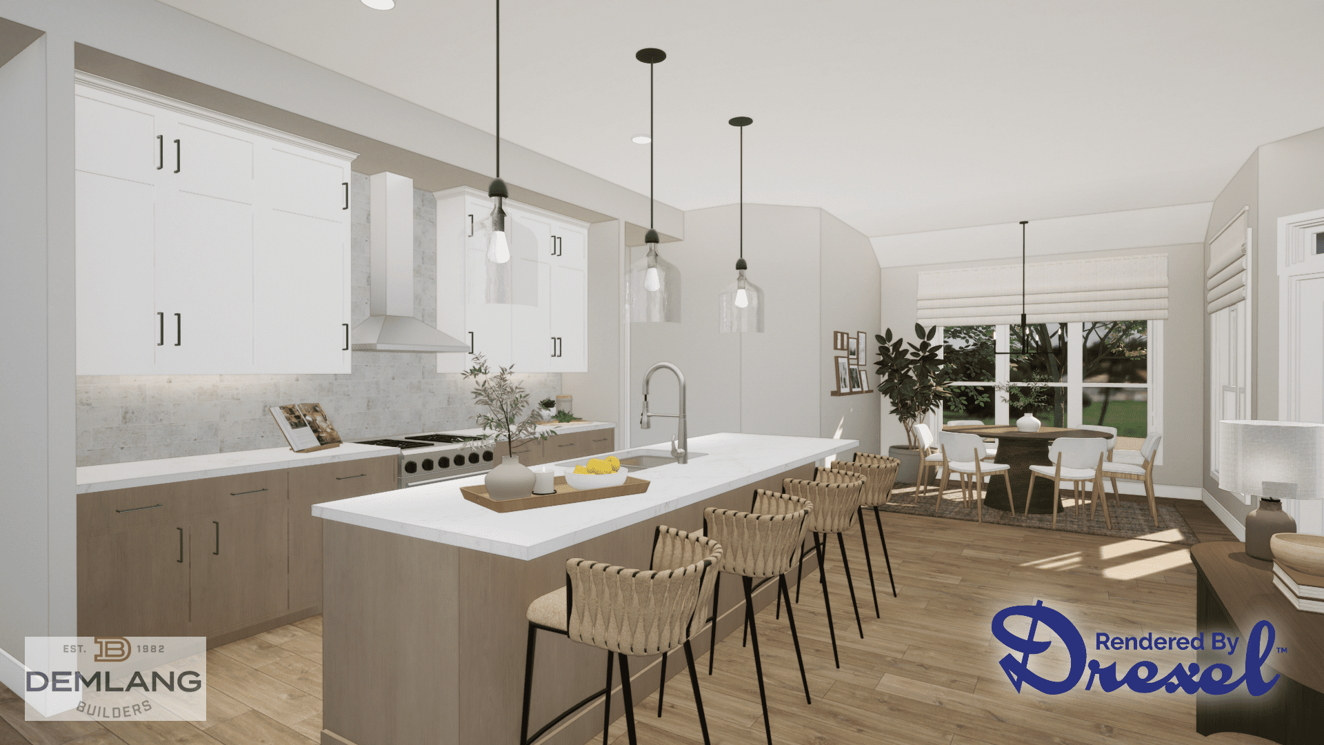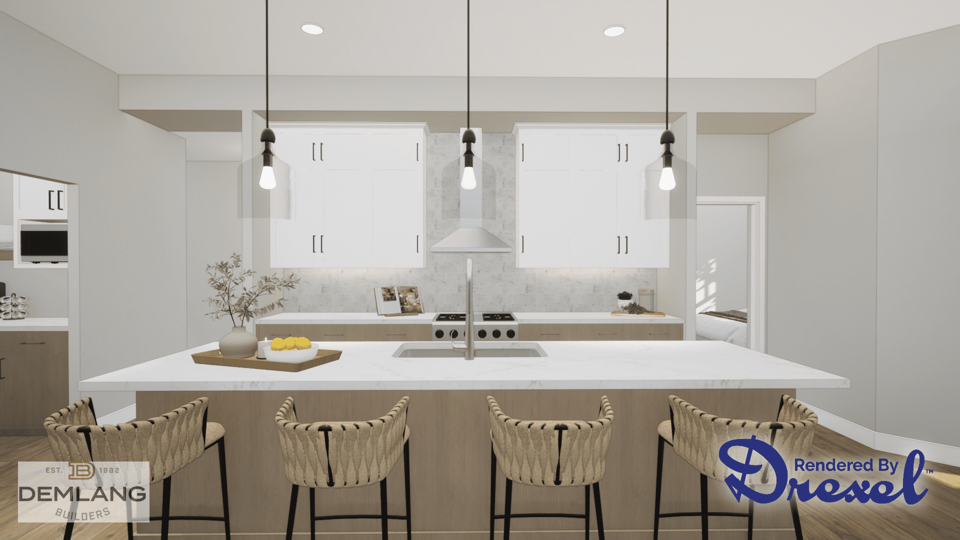 The gourmet kitchen is a must-see! Quartz countertops, a ceramic tile backsplash, an oversized island, and access to a Demlang “messy kitchen” make entertaining guests that much easier. Whether you’re cooking for your family or hosting, the walk-in pantry and window ensure a smooth flow.