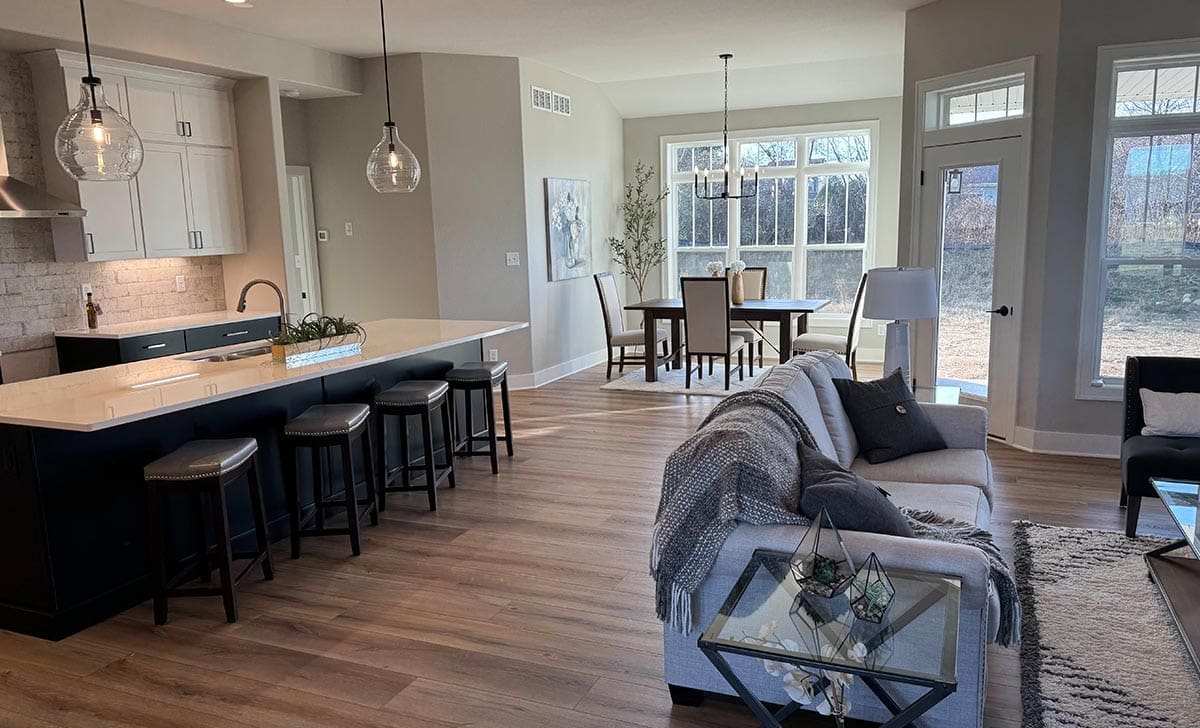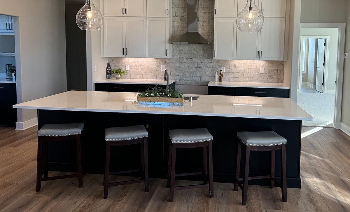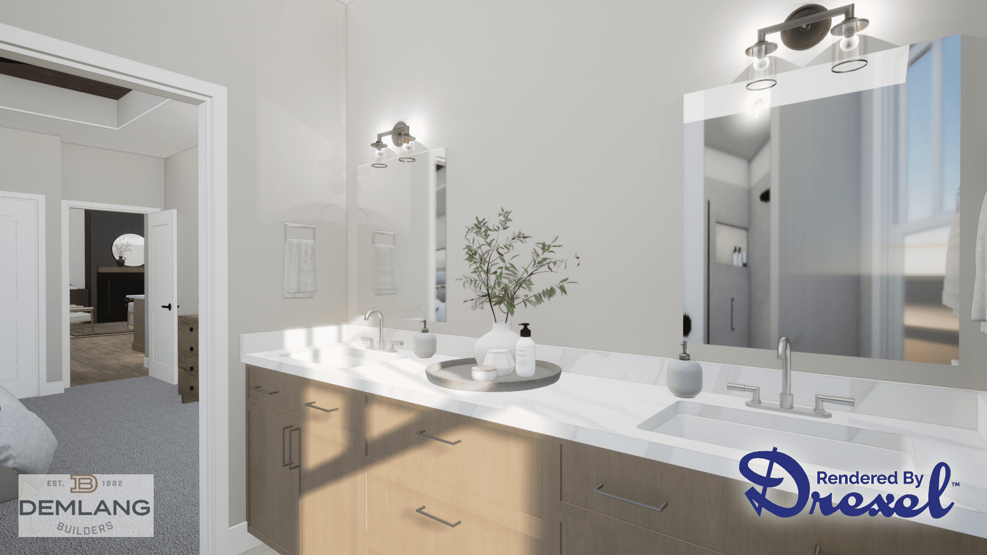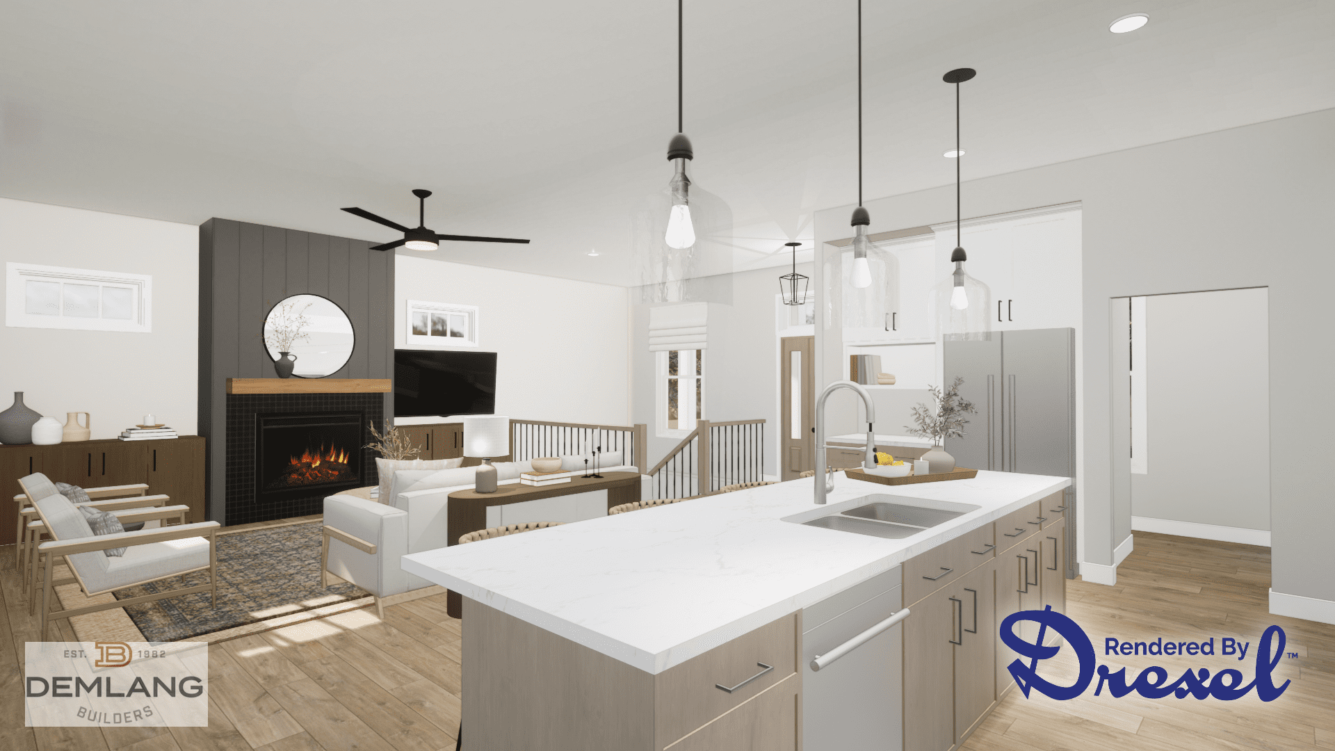The gourmet kitchen is a must-see! Quartz countertops, a ceramic tile backsplash, an oversized island, and access to a Demlang “messy kitchen” make entertaining guests that much easier. Whether you’re cooking for your family or hosting, the walk-in pantry and window ensure a smooth flow.