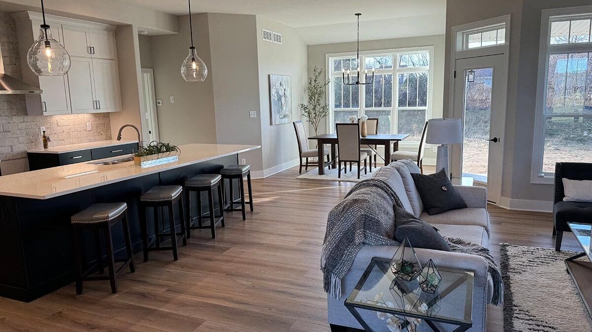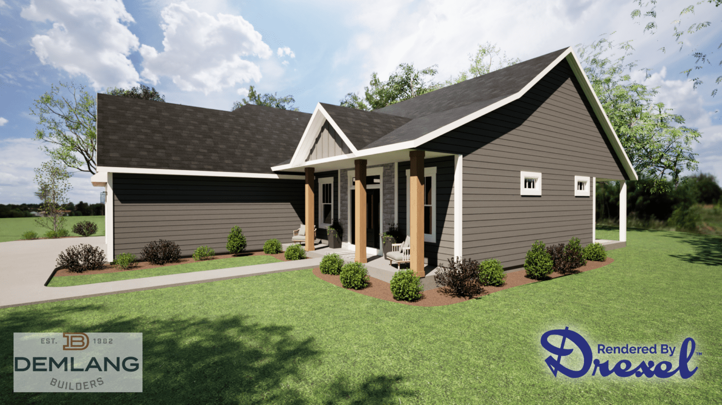 This open-concept ranch boasts gorgeous architectural details. Enjoy mornings in the primary suite with a tray ceiling, generous walk-in closet, large two-sink vanity, and quartz countertop. Around the corner are two additional bedrooms and a family bathroom, with easy access to the laundry room.