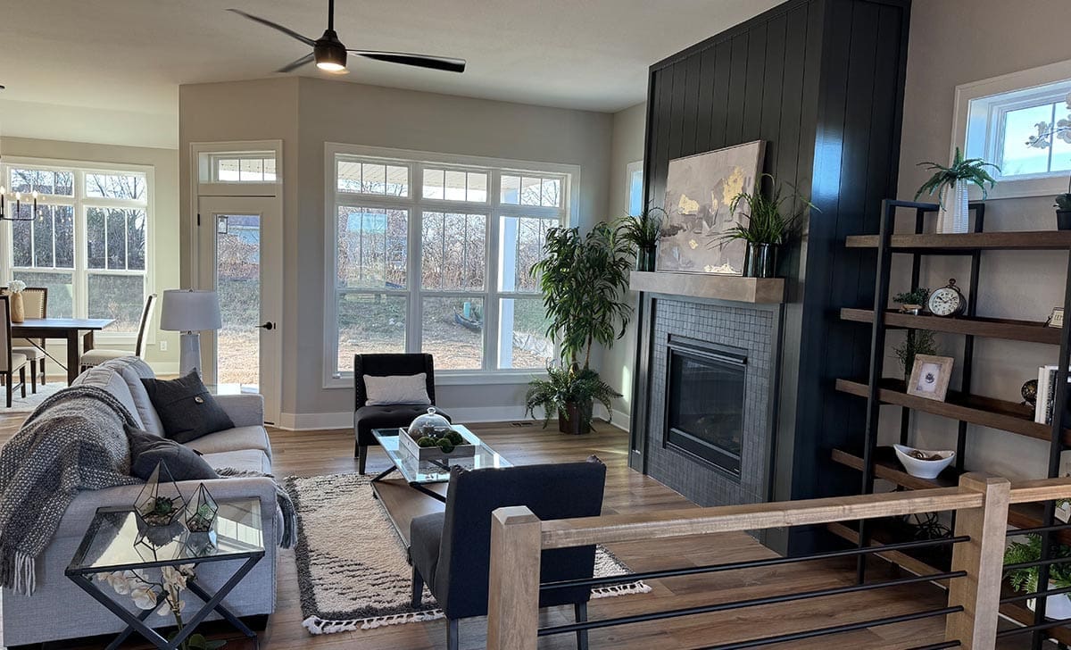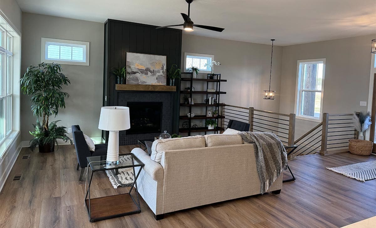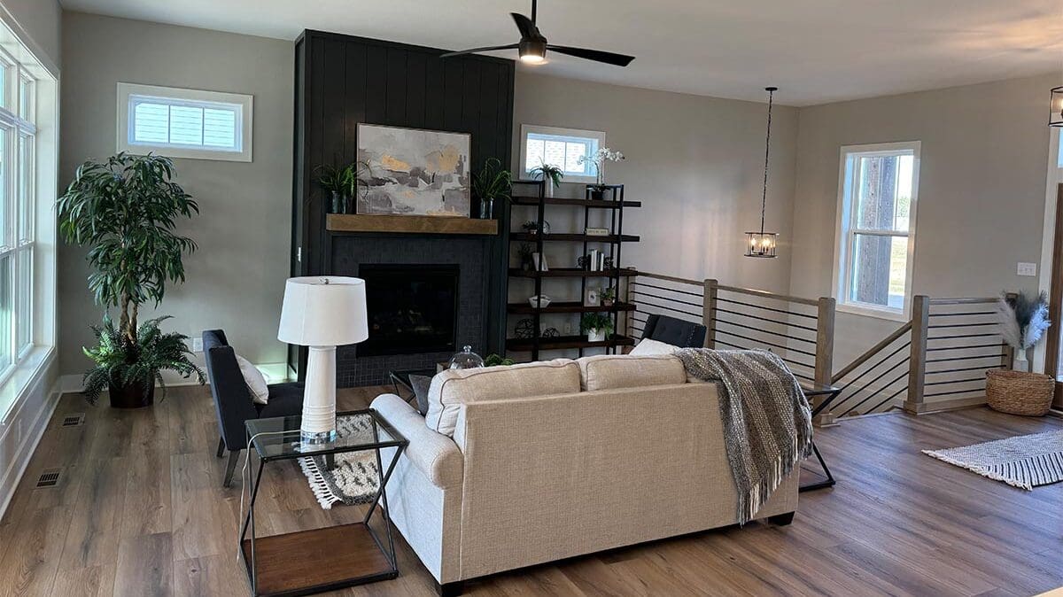 End your day relaxing in front of the gas-direct vent fireplace in the great room, which also features 10’ ceilings and oversized windows.