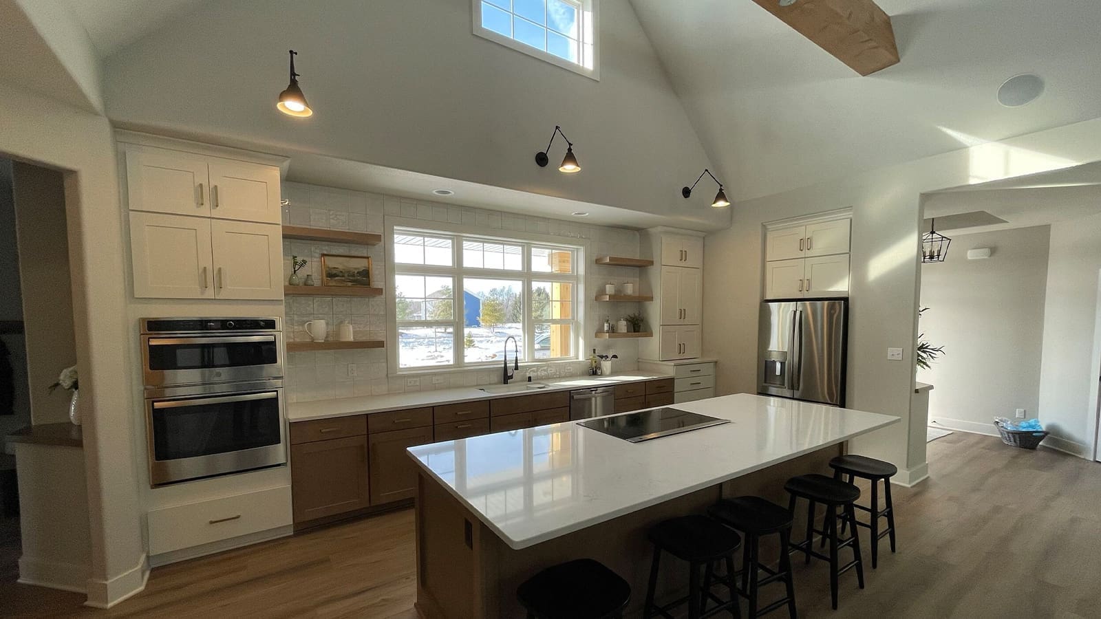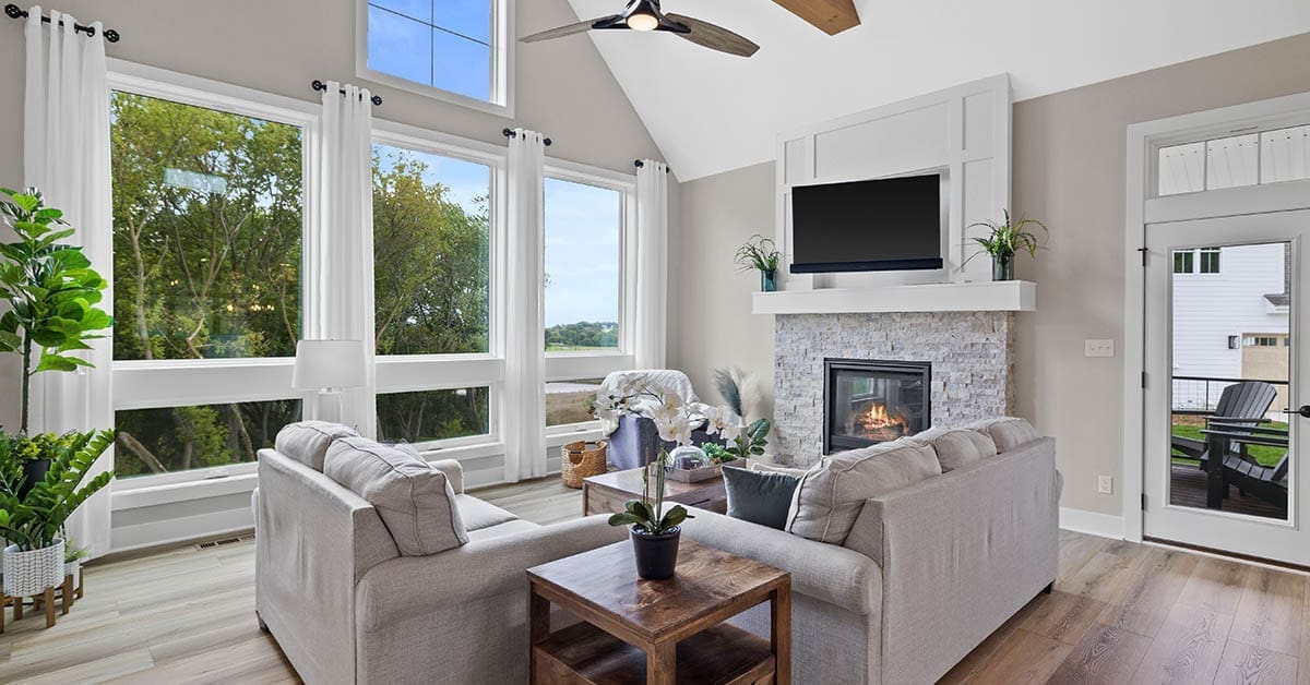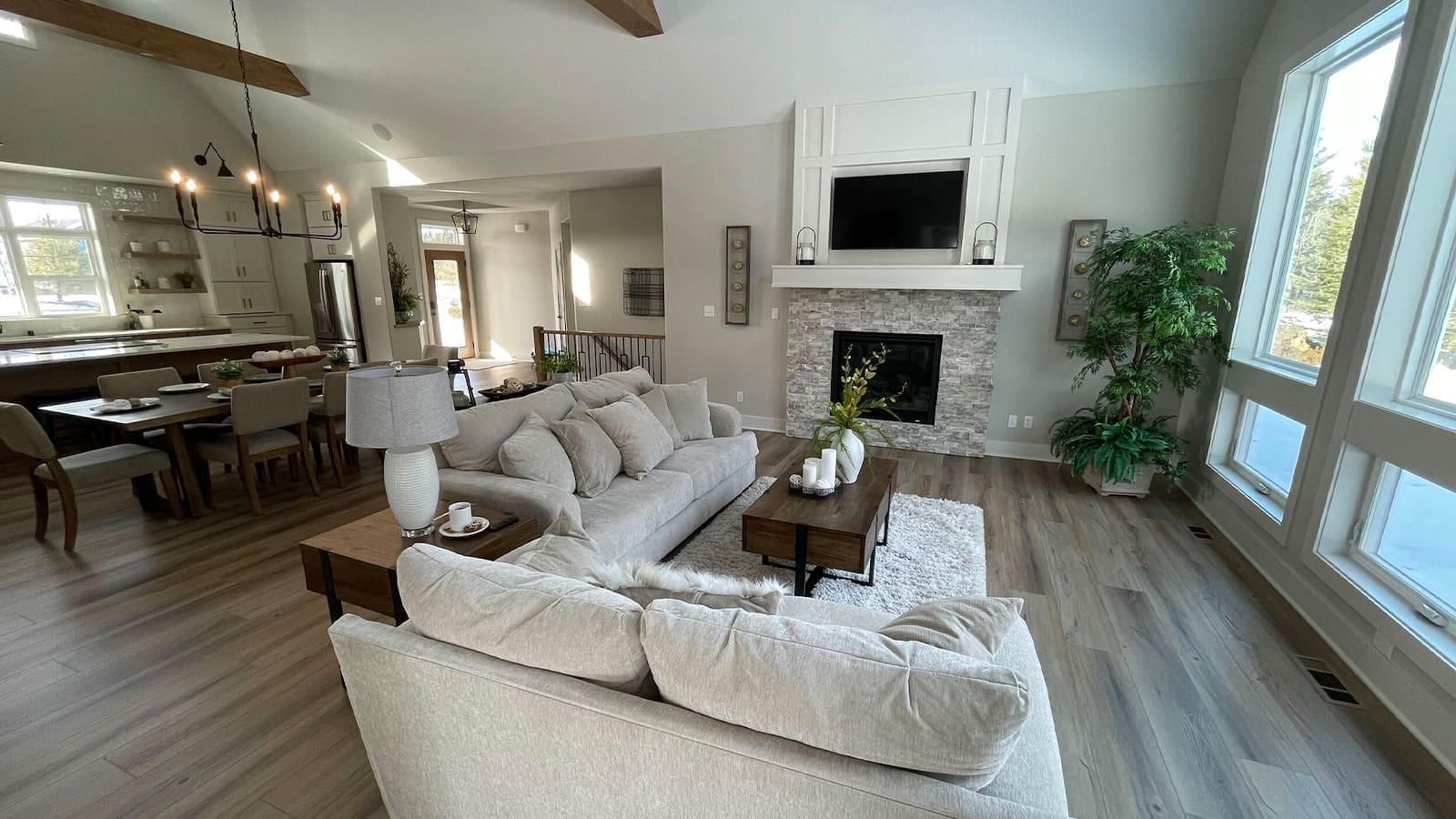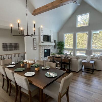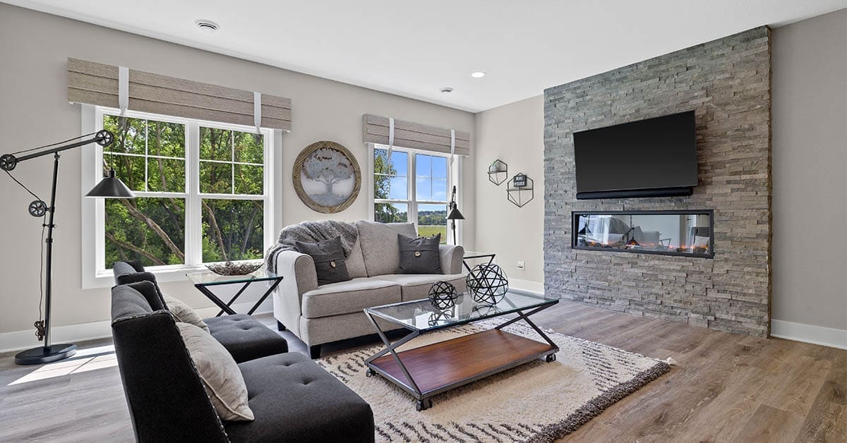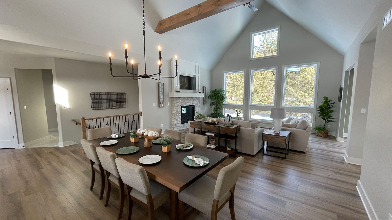 The Jenna at Stone Ridge of Merton Kitchen & DiningGreat Room with a fireplace of 2022 Parade of Homes model The JennaThe Jenna at Stone Ridge of Merton Great Room