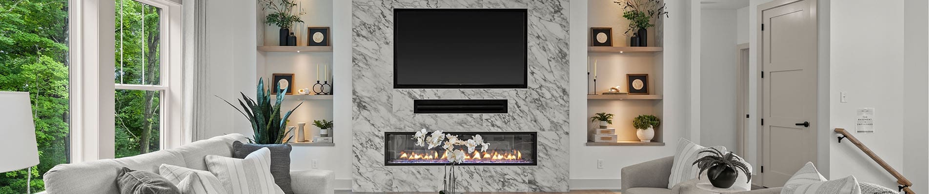 This stunning home located in Menomonee Falls’ Bella Vista Estates boasts exceptional curb appeal with dramatic roof lines and rich stone accents. Inside, a chef’s kitchen features quartz countertops, soft-close painted cabinets with stacked uppers, a chimney-style range hood, ceramic tile backsplash, under-cabinet lighting, and a walk-in pantry. The main living area is anchored by an energy-efficient corner gas fireplace with a striking floor-to-ceiling stone surround.