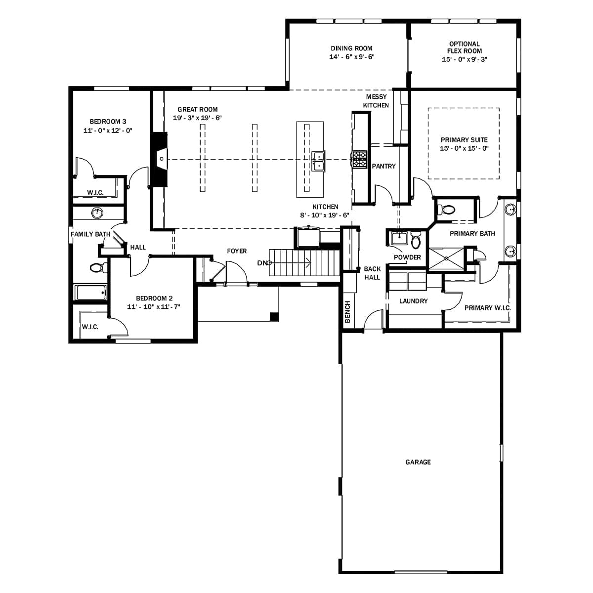The great room impresses with 10-foot ceilings, oversized windows with transoms for natural light, a cozy gas fireplace with stone surround, and a stunning tray ceiling enhanced by stained wood beams. The Hadley features the optional flex room just off the dinette—ideal as a sunroom, office, or reading nook.